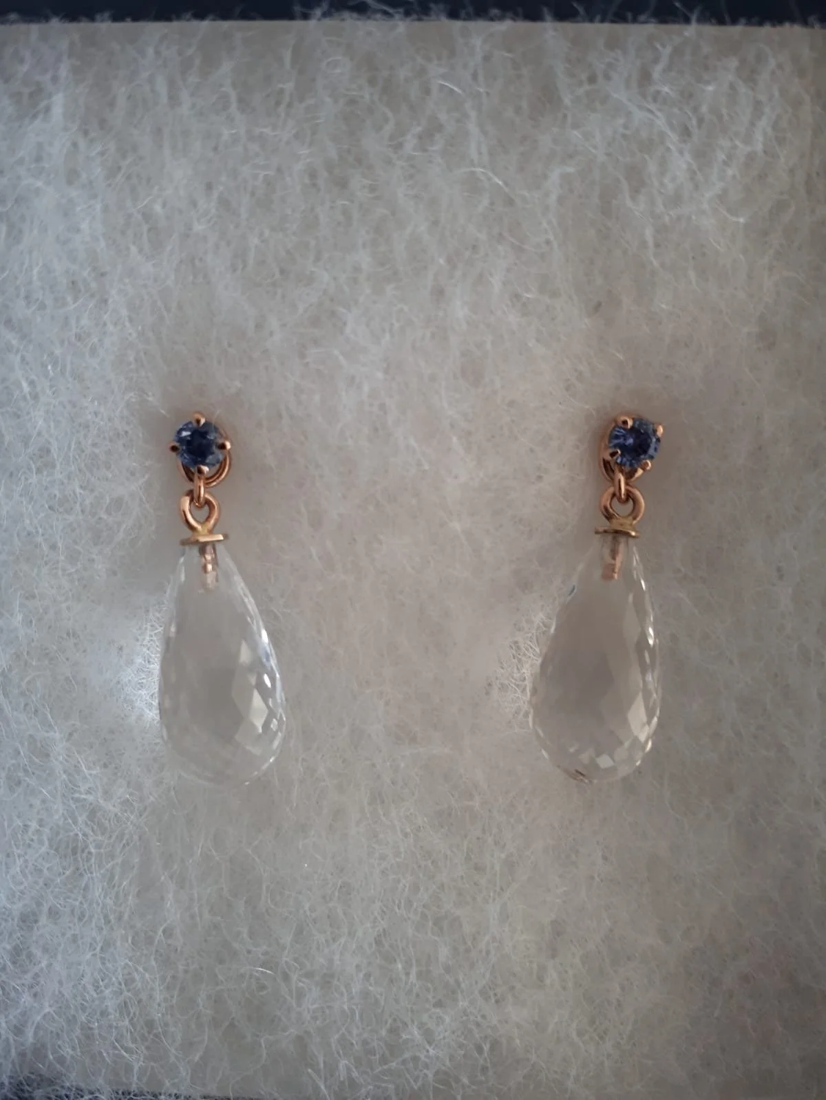 Rose gold sapphire studs with rock crystal brioletts.